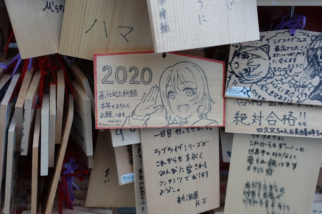 이곳은 러브 라이브의 토죠 노조미가 무녀 아르바이트(?)를 하고 있다는 설정으로 러브 라이브의 성지이기도 하고 아키하바라와 가깝다는 특징도 있어서 당연하다는 듯이 능력자 덕들이 모여들어 있습니다.