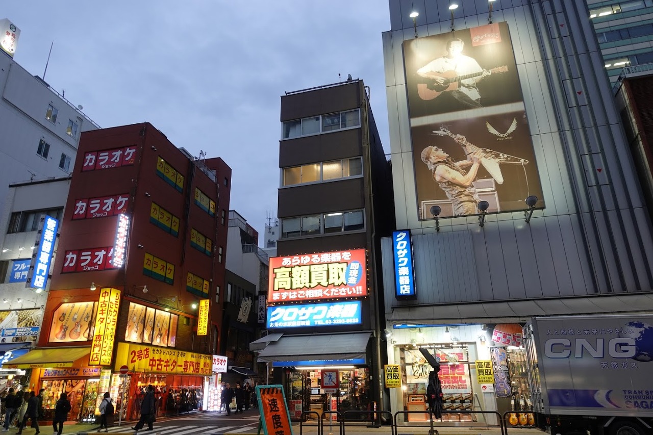 한국의 낙원상가와 비슷하게 악기점들이 모여 있는 오차노미즈의 악기상점가입니다. 한국과 약간 다른 점이라면 작은 악기상들이 밀집한 것이 아닌 대부분 꽤 큼직한 악기점들이 건물 하나둘을 통째로 사용하고 있다는 점입니다.
