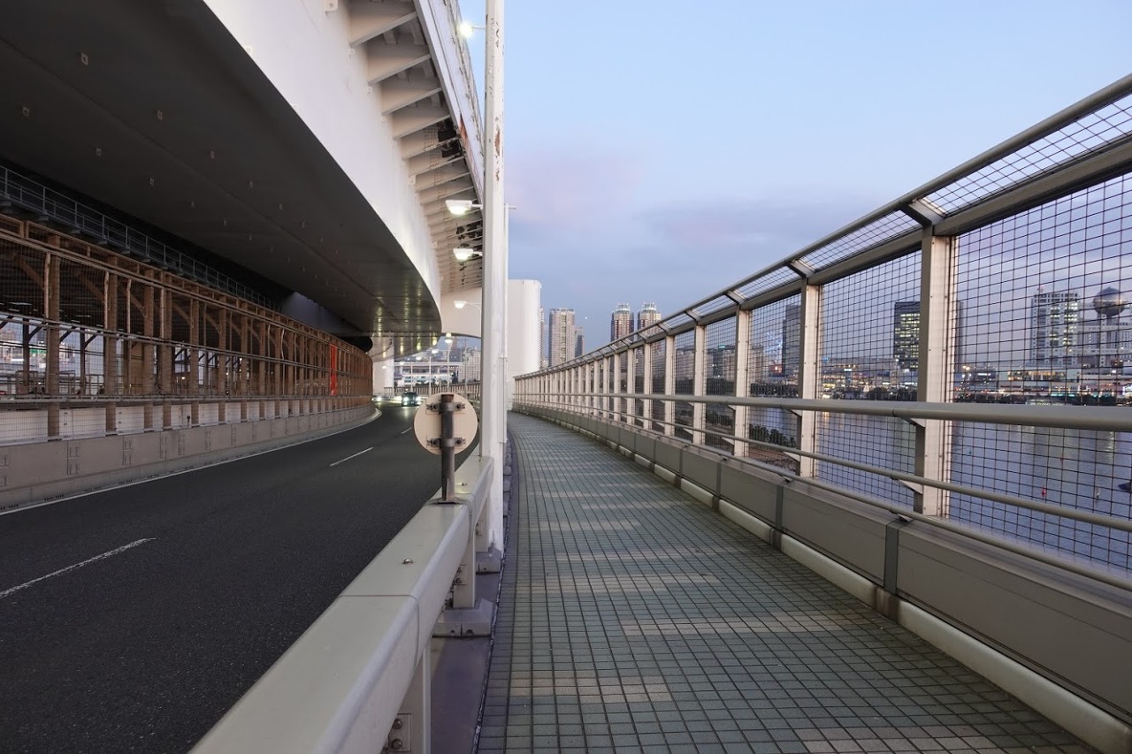 오다이바 방향에서 출발할 경우 중간의 갈림길에서 왼쪽으로, 즉 남쪽으로 들어가야 성지순례가 가능했습니다. 어느쪽으로 가던지 간에 야경은 무척이나 예뻤습니다. 다만 겨울이라 빠르게 해가 져서 야경을 볼 수 있었다는 점과 많은 차들이 지나다니는 곳이라 공기 질이 안좋고 해풍이 불어 꽤 춥다는 점을 감안해야 할 것 같습니다. 걸어서 총 1.5km쯤 되는 기다란 다리라 피곤했고 반대편으로 다시 건너가기에 시간이 되지 않아 한쪽만 지나가는 것으로 끝냈는데, 다음번에는 반대쪽 방향으로도 가서 야경을 촬영해보고 싶었습니다.