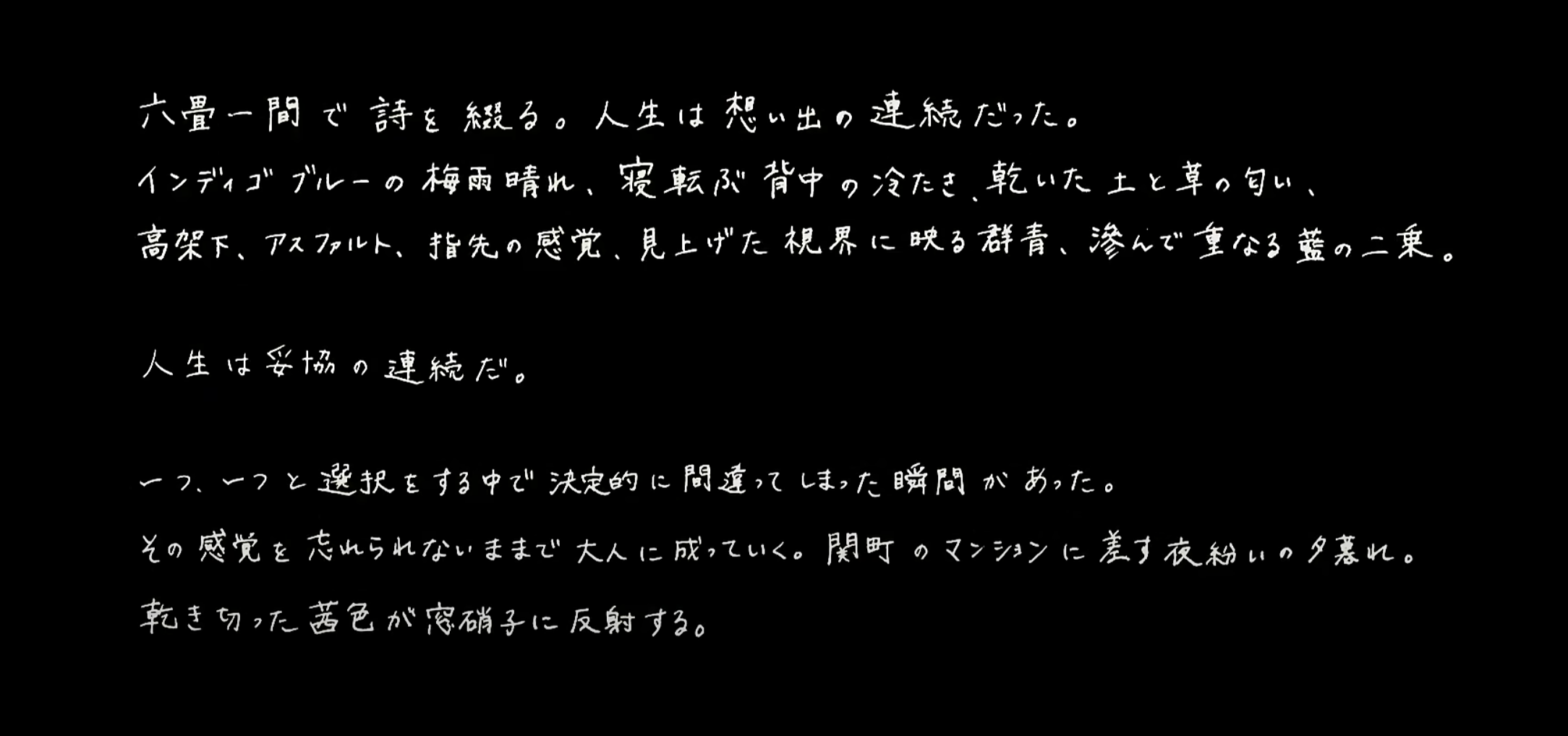 다다미 6장짜리 방에서 시를 짓는다. 인생은 추억의 연속이었다.