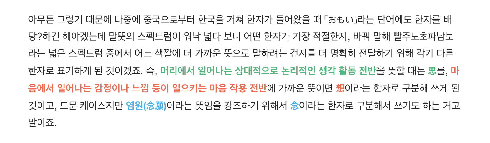 아래의 이 부분에서 음절이 확실히 띄워져 있어 동일하게 끊어서 번역하는 것이 좋지 않을까 싶어 이렇게 번역해봤습니다. 재미있는 점이 위에서는 「思い」를, 아래에서는 「想い」를 사용했는데, 이 두 단어는 발음도 똑같고 의미도 비슷하지만 미묘하게 뉘앙스 차이가 있다고 합니다.