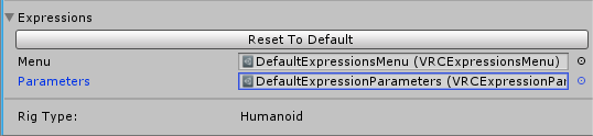마지막으로 아래에 있는 Expressions 메뉴를 열고 Menu와 Parameters도 Default 값들로 세팅해줍니다.