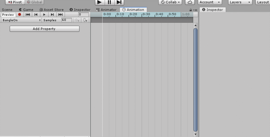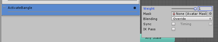 상단 메뉴에서 Window -> Animation -> Animator 을 클릭하여 Animator 탭을 열고, Layers에 레이어 하나를 추가한 뒤 이름을 ActivateBangle로 작성해줍니다.