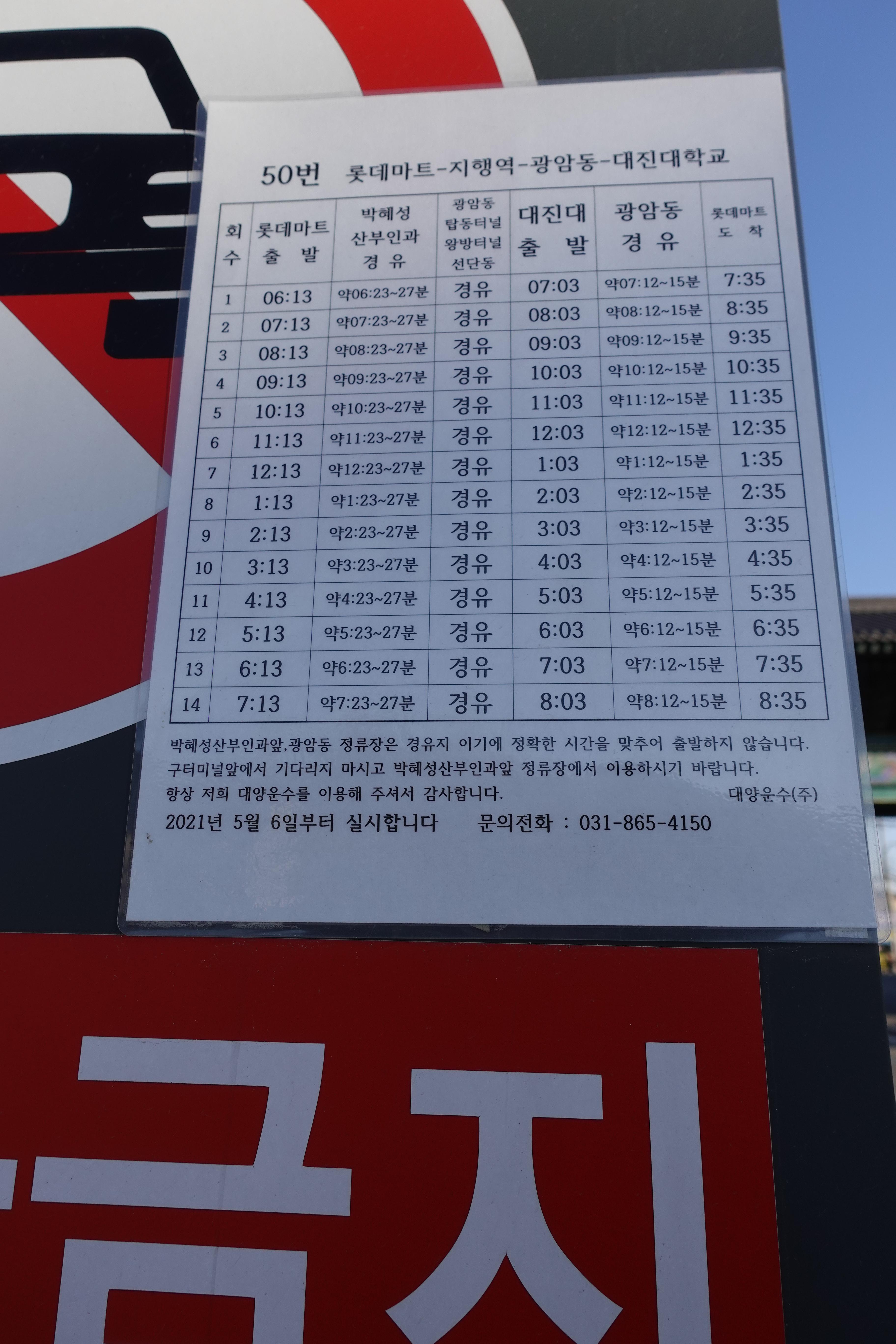 3006번을 타고 대진대학교까지 간 것까지는 좋았으나 역시 수도권을 꽤 벗어나서 그런지 버스 운행 간격이 되게 길어 50번 버스가 올 때까지 20분 가량을 기다리게 되었습니다. 50번 버스는 배차 간격이 약 1시간으로 잘못 계산하고 오게 되면 1시간 내내 기다리게 될지도 모릅니다.